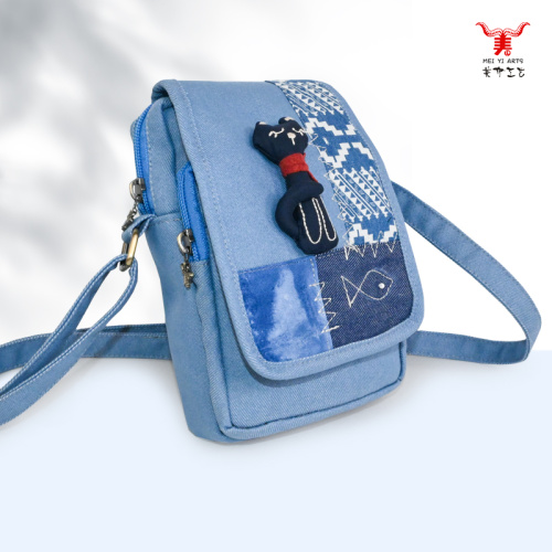 Mei Yi Arts Station Algodão Gato Bolsa Crossbody Flip-Top